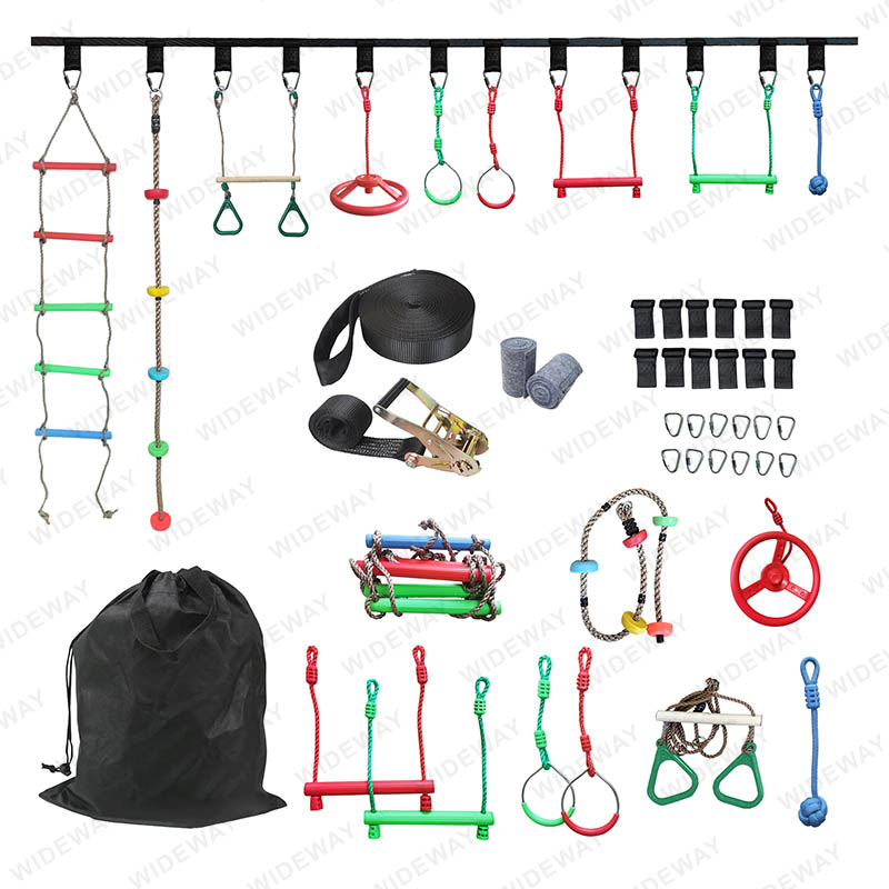 • Sisältää 2kpl trapetsipalkit, 1 kpl trapetsitangon, jossa on kolmion voimistelurenkaita, 2kpl voimistelurenkaita, köysia -tikkaat, apinan nyrki ja pyörivä ninjapyörä.